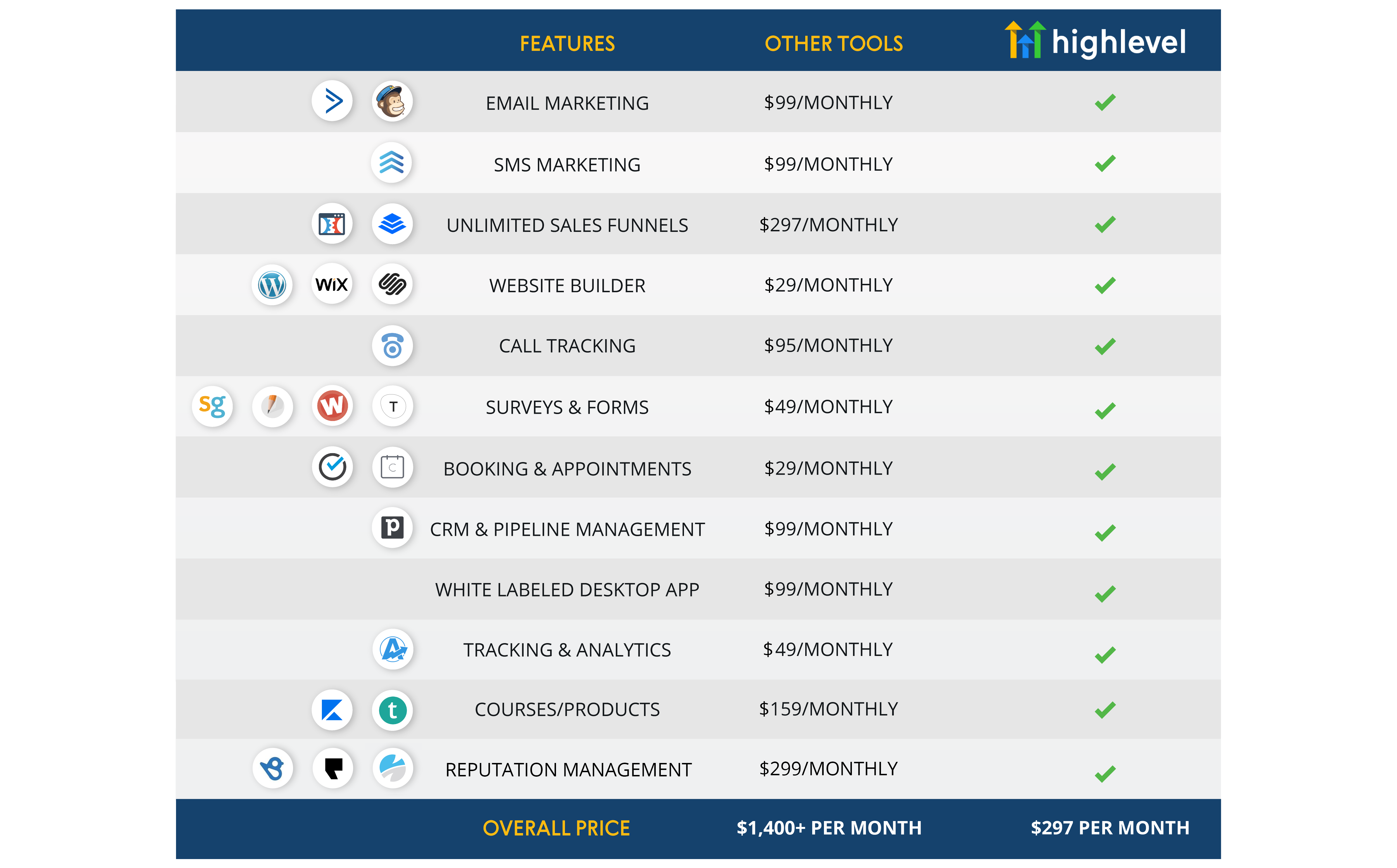 HighLevel Replaces the core functionality (and costs!) of all of these softwares: